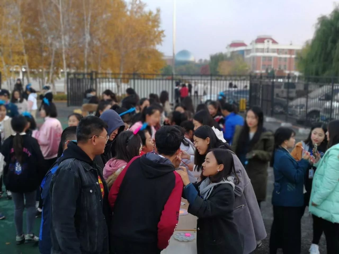 秋風(fēng)蕭瑟中,同學(xué)們?cè)缭绲牡竭_(dá)了活動(dòng)現(xiàn)場,簽名墻合影留念。