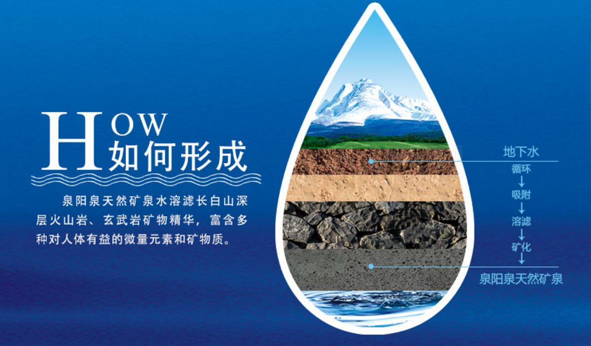 ? ? ? ?水源自地下1600米,歷經(jīng)50年,運(yùn)移10000公里,經(jīng)千年循環(huán)、吸附、溶濾、礦化而成,自然涌出地面,水質(zhì)天然。含硅、鋅、鉬、釩、硒、碘等多種微量元素,為國(guó)際流程的低鈉、低礦化度、重碳酸鈣鎂型礦泉水,呈弱堿性,PH值為7.10—7.60,十分接近人體內(nèi)環(huán)境,天然恒溫8℃,口感甘甜清冽,是適合飲用的好水。